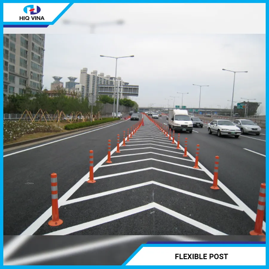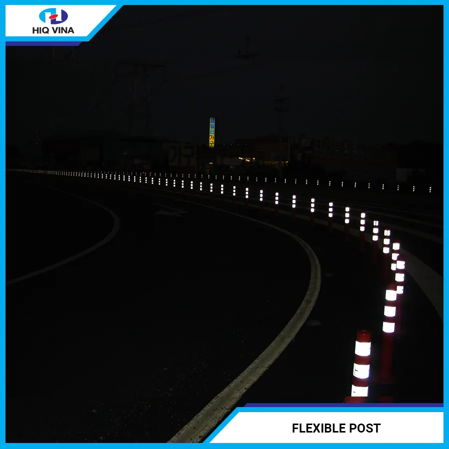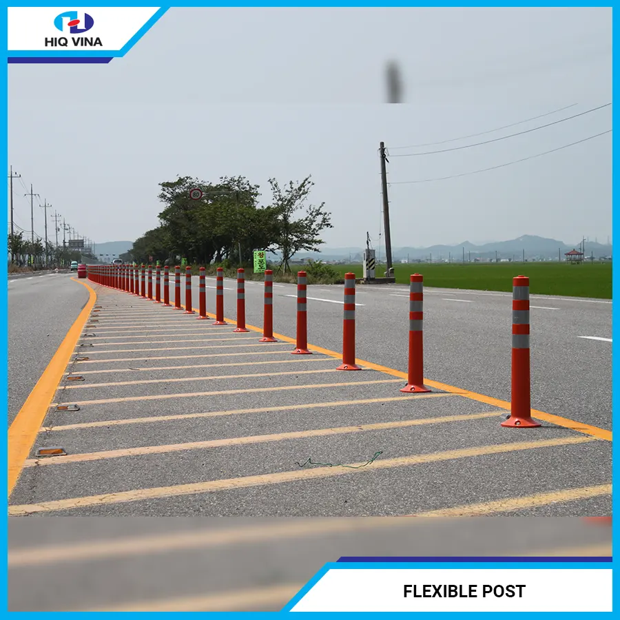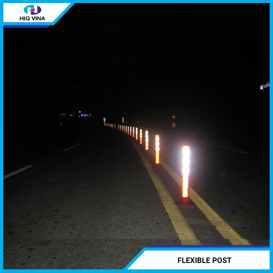 Flexible Post is made from Polyurethane, a superior material that replaces rubber, offering high durability and excellent elasticity. It is equipped with a reflective sticker. These cylindrical traffic posts are used on many national highways and streets to help reduce the occurrence of serious accidents and traffic congestion.